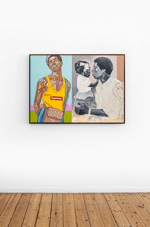 Working with and across time, each of the artist’s pieces effectively leaves a trail back to his home, in honour of the shapes, colours and origins that inspire him. There are as many conceptual layers as there are literal lines within the faces and circumstances of his subjects, and Tjeko’s practice fixates on their assembly before he makes his first mark.