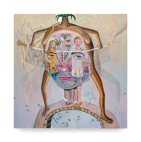 In this way, Steyn’s work shares an affinity with another branch of surrealism —the often overlooked or misunderstood work of the female surrealists who operated on the periphery of the Global North, from Leonora Carrington and Frida Kahlo to Remedios Varo and Leonor Fini. These are painters who took themselves as subjects, who climbed into themselves and reemerged with strange images —images of women with wheat-hair and thread-hearts. Like their more famous male counterparts, they gleaned from dreams. Unlike them, they dared to lay their own selves on the line, to peel themselves inside out. This is perhaps why these artists have been reappraised in recent years, particularly in the 59th Venice Biennale, The Milk of Dreams (named after Carrington), which tied their work to extremely current questions about definitions of the human in the face of ecological and technological change.