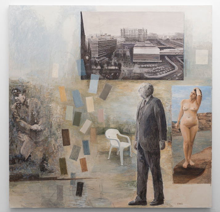 In 2024, Stone presented his most recent solo exhibition, Mid Stream at SMAC Gallery in Cape Town, South Africa. Other notable solo exhibitions include a major museum retrospective of Stone’s paintings presented by SMAC Gallery at the Standard Bank Gallery in Johannesburg South Africa (2013), along with a seminal publication on the artist and his works -Simon Stone: Collected Works; Cogs of Mercy at SMAC Gallery in Cape Town, South Africa, accompanied by a new publication, titled Simon Stone: Sketchbooks 1 –100, (2018); New Paintings at SMAC Gallery in Johannesburg, South Africa (2016); and Both Sides of Now at SMAC Gallery in Stellenbosch, South Africa (2014). In 2020, Stone’s work was included in A Show of Solidarity, a group exhibition in support of the South African Solidarity Fund during an enforced national Covid lockdown, at SMAC Gallery in Cape Town,as well as the Investec Cape Town Art Fair.