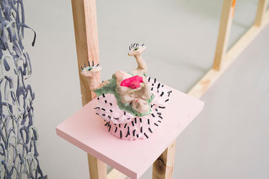 Created within and around a greenhouse within a gallery space, Garden Smoothie finds inspiration in the very idea of something growing – a fluid mush mash of thoughts and concepts, slithering freely across their environment – and, somewhat like a real smoothie, this exhibition presents itself as a selection of organisms with the potential to mutate into any form.