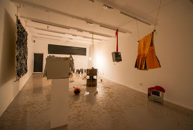 This exhibition presents a selection of photographs, an installation and video piece that are all rooted in Lhola Amira’s recent project based in Ghana. This project saw the artist engaging with local and current issues through a number of appearances and interactions in Ghana. The project, described by the artist as ‘Looking for ‘Africa’ in ‘Africa’, engages with contemporary discourses around decolonization, nationality and race.