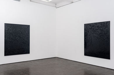 In this sense, the camera acts as a brush, as do his foraged sticks, which Eastman employs as instruments to draw into the paint. As he draws, broken pieces fall to the surface and settle like twigs on a riverbed.