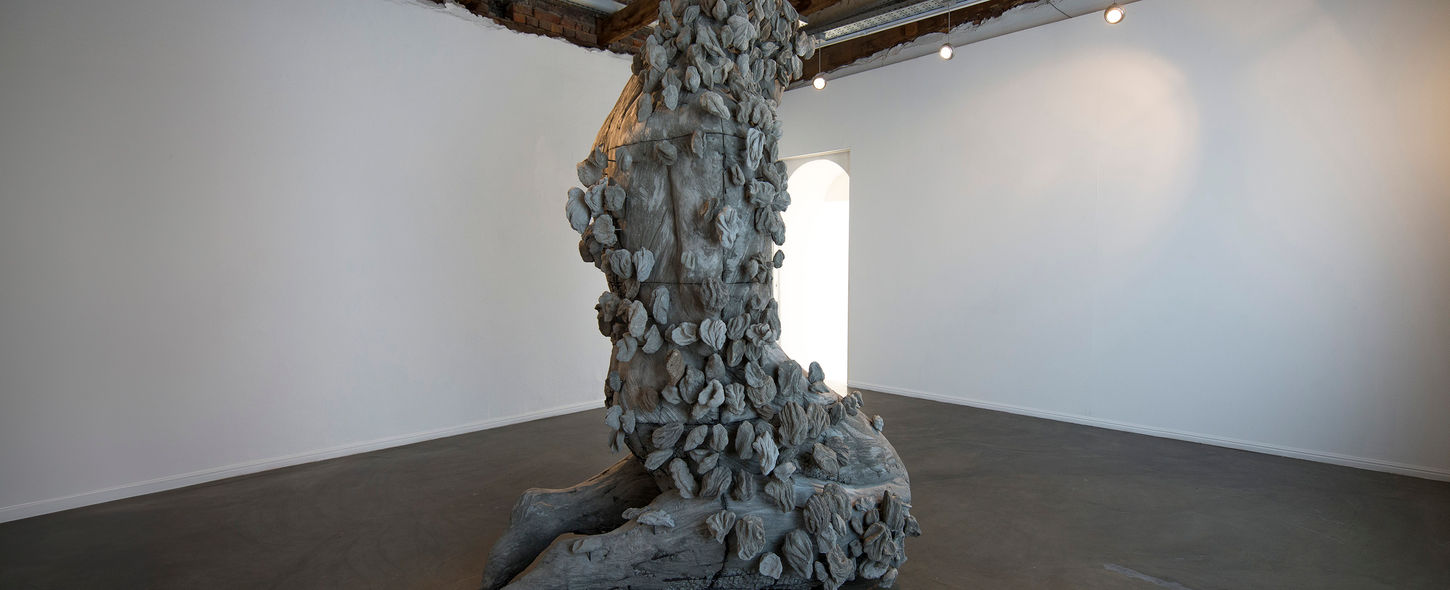 Taking direction from the materiality of her cement, and the elements used in its creation, Moe gathered sand and dirt from a number of locations she travelled to this year – Neuchâtel in Switzerland, Dhrangadhra in India, Gaborone in Botswana, the Karoo in South Africa – and embedded each sampling of earth into cement carvings of birds and figures. A combination of creating work both on site and within the studio, Moe engages intimately with the very ‘being’ of the place – reflecting on innumerable implications of coded landscapes – and pushes the matter of her structures as she welds, casts, models and carves into them, opening up narratives around image and materiality. Distinctly structural, Moe’s work stands firmly rooted in the gallery – the present – and evokes scenes reminiscent of a funerary statue or memorial. Here, the work belongs to no specific place or time, and is one that can be moved from site to site, dislocated and without identity. In evoking these scenes and playing to the many grounds from which Moe’s cement was cast, the work explores and reexamines the South African landscape in art, illustrating it as one fraught with ambiguities – both monumental and fragile, permanent and impermanent, located and displaced, structured and ephemeral.
