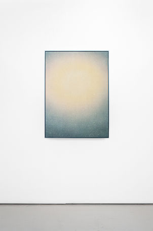 As the title suggests, Interlude is a small experimental exhibition. A liminal moment within Rosie Mudge’s career in which new motifs are emerging with undefined conclusions. They warn us of the dangers of staring into the sun. To look to the sun, has long been the driving force for proponents of Western progress. And the dawn of a new era is indeed here as we transgress tech boundaries with AI, redefine political-economic landscapes such as the North Atlantic Treaty and take unwitting control of our climate. Sungazing, Mudge says, creates the illusion of stability: the ever present and unchanging rhythm of day and night that the sun creates on Earth is symptomatic of a much larger and continual propulsion into the unknown. By occupying the space of the crepuscular in Interlude, the artist asks: What will happen when the light changes? Glowing orbs of light consume many of Mudge’s thoughts on canvas in this exhibition. So do colour charts of twilight and portal-like or submerged views of light. These changing positions or viewer orientations to the sun suggest a changing reference point, placing the viewer in both exterior and interior realms of perspective. This brings us to the artist’s long-standing interest in the human condition, something Mudge views from the vantage point of a shared humanity, not restricted by specific cultural or geopolitical identity politics. The sun as a symbol requires us to consider the human condition as something seen from two vantage points: the wholistic context of the human species and the personal space of psychology. Interior worlds are often accessed away from the sun’s glare. Fittingly, the first proponent of psychology as an experimental science was the German philosopher, Gustav Fechner, who went blind for three years from staring into the sun while studying afterimages. It was in part his blindness that helped him overcome cognitive bias, what later researchers have termed illusion of explanatory depth (IOED), revealing how little was understood about how the mind works. The danger of staring into the sun, in Fechner’s case, released him from the confines of a narrow worldview. Mudge’s observations from her fixation on the sun are poetically suggested in the song lyric titles of the works on display. They are drawn from the artist’s personal playlist of emotionally charged Millennial pop songs: Linkin Park, Muse, The Killers and the Strokes, to name a few. These songs epitomize an era of disquiet and foreboding from within a social system that feels like a cage, as described by The Offspring in Staring at the Sun (1998, Americana album). Mudge’s trademark glitter and enamel surfaces sparkle but with a lachrymose heartache as the artist makes peace with an understanding of inevitable change. This poetic melancholy is communicated through the subtle shifts in forms and colour throughout the works on display. Many of the strong phrases Mudge traditionally uses in her canvases are conspicuously missing in this body of work. They appear only in fragmented materials, as bead and chain works, at the entrances to the exhibition as if to iterate the terrain within the exhibition as one of liminal uncertainty. The sun as a symbol holds duality in its meaning. It is both life-giving and destructive at the same time making it a power symbol of transformation. Mudge reminds us of both the beauty and gloom implicit in change by creating an Interlude characterized by twilight.