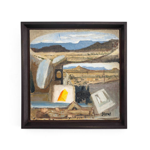 While the immediate influences had to change, his prolific practice of gathering and consolidating various visual components was able to continue. His move away from oil paint to acrylic, brought on by a lack of supply, allowed Stone to make work on a larger, faster scale, whilst maintaining his dependence on his vast personal archive of sketches and cutouts. For Stone, this time of isolation proved to be a fertile ground. These new paintings spark both fresh and familiar interest. Within Stone’s new compositions we are reacquainted with his eye for detail and his appreciation of the absurd. Indeed, each viewing uncovers new substance, a segue via his talismanic symbols, and a testament to his decade-spanning perseverance and commitment to his craft.