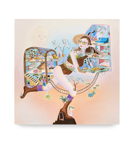 Foliage has always been a major feature in Steyn’s work, but in Home Bodies life and green things sprout and grow from every part of this work that honours cocooning. From cacti and bonsai plants to ferns and flowers in vases, Home Bodies serves as a montage of the little things in life that paint the bigger picture. From the seemingly mundane – a pet lying resplendent in bed next to its sleeping owner – to the frivolous moments of fashion and play, each interior scene is a window into rooms that flow in and out of each other, distorting and enhancing the view.