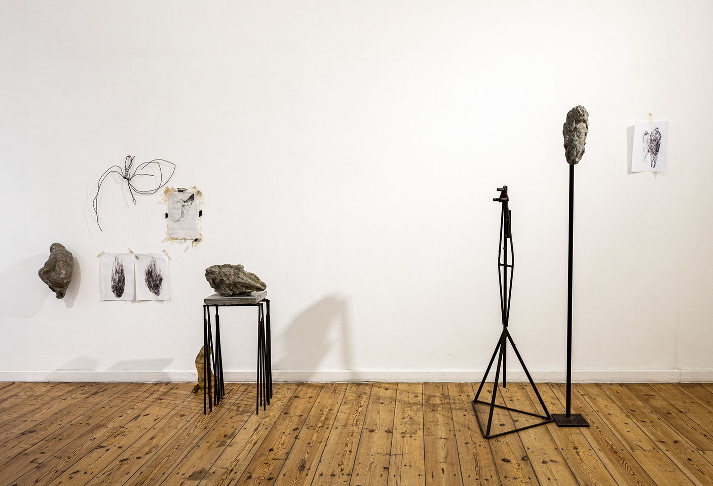 Timothy Ingold proposes that the world is a “dynamic mesh of interwoven lines. These lines connect, tangle, and form relationships." Lines, both physical and metaphorical, build the world around us. They outline, point to, and give texture to our sensorial, intellectual, emotional experience. Moe’s sculptures are in dialogue with the dynamism of these lines - how they react to opposing forces of tension and friction, and how they connect and entangle to form knots. They respond to the web of energy that connects us both to each other and to the world around us. According to Ingold this sense of life can be found in “concretions or swellings in animal tissues, and even, by analogy, to rocky outcrops of similar conformation and texture."