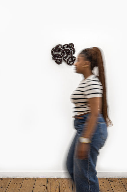 Sana Naqvi reminds us that “textiles are not limited to their physical value alone, but rather an entire set of experiences and feelings transmitted”. Textiles, beyond their material form, carry stories, memories, and the echoes of human experience. In Makwakwa’s practice, textiles are transformed into vibrant vessels of narrative and ritual. She works with natural fabrics like Umbhaco, enriching them with pigments derived from ochre and botanical dyes, interwoven with glass beads and embroidery. These materials - ancient in origin yet reimagined in contemporary forms - serve not merely as aesthetic choices, but as instruments of cultural transmission. In more recent works such as her textile totems and beaded talismans, Makwakwa incorporates wire and safety pins, expanding her visual language to reflect layered narratives. Each material bears symbolic weight: safety pins suggest improvisation and the act of holding together; cotton and natural dyes evoke intangible knowledge and Indigenous care; ochre resonates with ancestral memory; and beads become luminous conduits of ritual, connection, and ornamentation. Her work navigates the ongoing dialogue between modernity and tradition. In conversation, Makwakwa speaks of the grounding comfort found in domestic spaces. She recalls a trip to the rural Eastern Cape interiors where simple furnishings - a coal-burning stove, enamel cutlery, a wooden table, room dividers - reflect a delicate balance between tradition and the contemporary. Objects like tablecloths, tea sets, candles, and the bible embody continuity and care, anchoring domestic life in ritual and routine. Makwakwa’s textiles and soft sculptures celebrate this continuum: the ritual care of materials, the layering of ancestral and contemporary knowledge, and the weaving of history into tactile, intimate forms. Her work preserves maternal lineage, transmitting identity, memory, and culture across generations, while embracing the realities of modern life. It honors the simplicity and wisdom embedded in pre-colonial domesticity without romanticizing the past. The exhibition asks a central question: how do we engage with modernity without severing our roots? Materials provide the answer. Safety pins stitch fragments of memory together. Cotton softens and connects. Ochre anchors us to the land and our ancestors. Dyes speak of place. Beads map networks of care, beauty, and celebration. In Makwakwa’s hands, these materials become a living vocabulary where the ordinary is imbued with extraordinary meaning. One striking piece, That Thing Around Your Neck, composed of wire and safety pins, meditates on rhythm, routine, and the hidden resonances of domestic life. Here, simplicity is not absence, but presence - of thought, of touch, of intention. Domestic space becomes a site of negotiation, where past and present intersect, and where tradition meets human ingenuity. Umbhaco Oditshiweyo reflects on the art of balance. It affirms that tradition and modernity are not opposites but companions in dialogue. Through this body of work, visitors are invited to reflect on their own material worlds - the threads, pigments, and objects that structure daily life, link generations, and reconcile histories. In this interplay of material, space, and human intention, the exhibition offers a quiet but powerful meditation on belonging, continuity, and care. Source: Sana Naqvi,11 August 2024, Taarkashi - drawing matrilineal threads, Museum of material memory https://museumofmaterialmemory.com/taarkashi-drawing-matrilineal-threads/